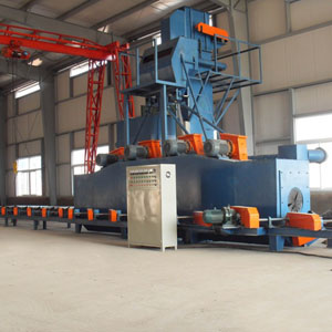 鋼管內外壁拋丸機是一種通過拋丸對鋼管進行清理、噴涂的拋丸設備。該機主要對鋼管進行旋轉表面與內腔已達到去除粘砂、銹層、焊渣、氧化皮及雜物等。使鋼管表面光滑并提高工件的漆膜附著力,提高鋼管的抗疲勞性能和抗腐蝕性能力,延長其使用壽命。